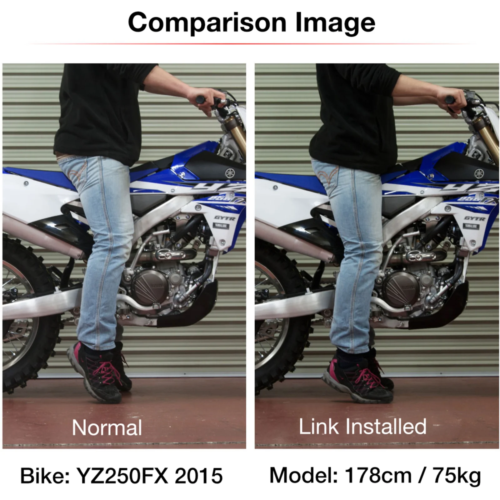 Provides lower seat height. Bolt-on design, easy to install.